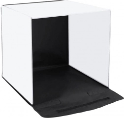 Edinstvena konstrukcija šotora odpravlja stroboskopski učinek in zagotavlja visoko kakovost svetlobe brez senc. Poleg tega v paketu najdete pisano zbirko fotografskih ozadij, ki vam pomagajo prilagoditi kader določenemu predmetu. Zgornji odprt pokrov omogoča fotografiranje od zgoraj.