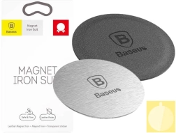 Magnetni nosilec za telefon Baseus Iron Suit je idealna izbira za vse, ki iščejo spoj sloga in praktičnosti. Vsebuje dve okrogli kovinski ploščici, od katerih je ena prevlečena s črnim usnjem za dodatno eleganco.