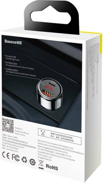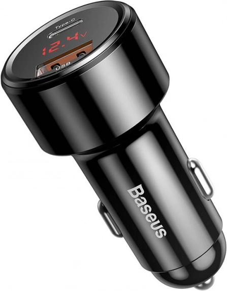 BASEUS Magic PPS je zanesljiv avtopolnilec za vžigalnik s podporo sodobnim standardom hitrega polnjenja. Zahvaljujoč USB‑C PD do 45 W in QC 3.0 izjemno hitro polni pametne telefone, tablice in izbrane ultrabooke. Vhod DC 12–24 V zagotavlja združljivost z osebnimi in dostavnimi vozili, konstrukcija iz PC + ABS pa je trpežna in lahka.
