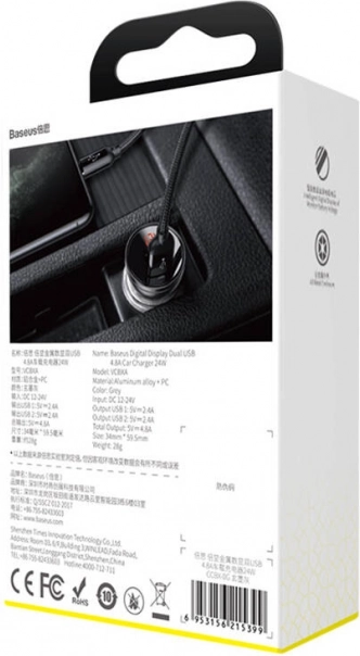 Polnilec za avto Baseus z zaslonom 2x USB