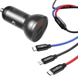Polnilec je opremljen z dvema USB portoma, ki omogočata hkratno polnjenje dveh naprav z močjo 2,4 A za vsak port. Zaradi tega nikoli ne boste čakali na polnjenje svoje naprave.