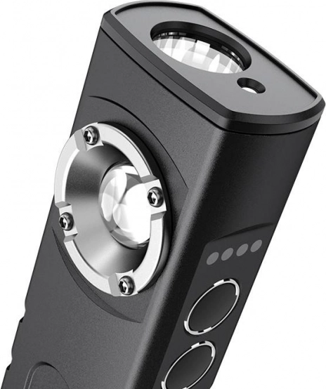 Ta svetilka je opremljena z rdečim laserjem, kar jo naredi idealno za kazalec na predavanjih ali predstavitvah. Baterijo lahko enostavno napolnite z USB kablom in naprava lahko služi tudi kot powerbanka za polnjenje mobilnih telefonov.