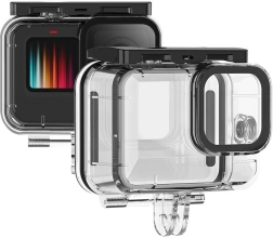 To praktično ohišje za GoPro Hero 9 / 10 / 11 / 12 podjetja Telesin zagotavlja vodotesnost do globine 45 m. Z njim boste zajeli impresivne podvodne posnetke, k čemur pripomore tudi 95 % prepustnost svetlobe. Namestitev je enostavna, ohišje pa je trpežno – vaši kameri nudi vsestransko zaščito.