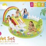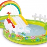 Prisrčno napihljivo igralno središče v vrtni zasnovi bo vaš vrt spremenilo v priljubljeno otroško igrišče. Mavrični razpršilnik poskrbi za osvežitev v vročih dneh, medtem ko mehki tobogan in igrivi okraski vabijo k vsakodnevni zabavi. Vključeni so tudi napihljivi dodatki – metuljčki, gobice in žogice – ki spodbujajo ustvarjalno in gibalno igro.