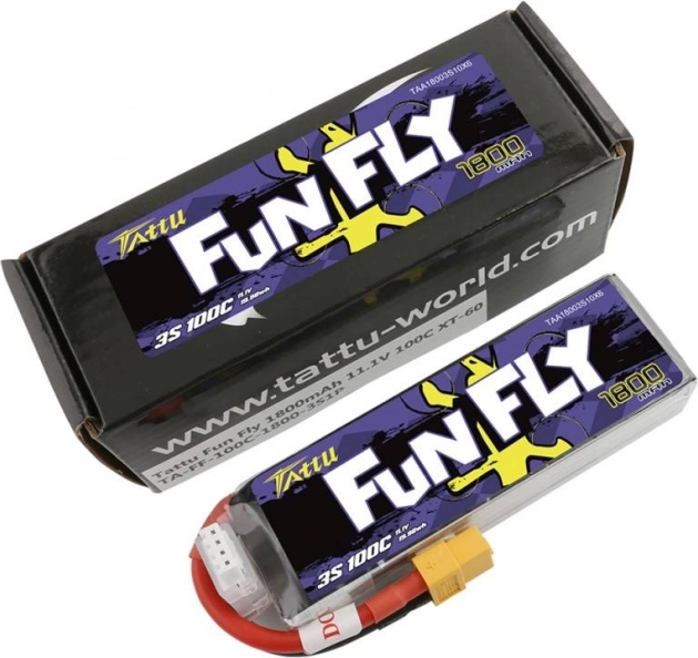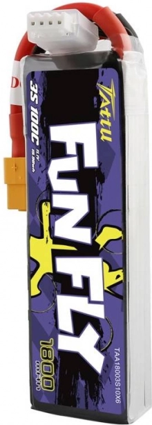 Tattu Fun Fly 1800 mAh 3S je priljubljen LiPo akumulator za tekmovalni in freestyle FPV. Ponuja visok stalen izpustni tok 100C (do 200C v konicah) za takojšen odziv motorjev in stabilno napetost skozi celoten let. Robustna zasnova in natančno izbrane celice zagotavljajo zanesljivost in ponovljivost zmogljivosti.