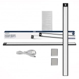 Namestitev je stvar minut: priloženi samolepilni magnetni nosilci držijo svetilko trdno na mestu in hkrati omogočajo hitro snemanje za polnjenje prek USB‑C. Kakovostna kovinska zasnova s profilom le 9 mm se elegantno zlije z vsakim interierjem, od omare do knjižne police in kuhinjskega pulta.