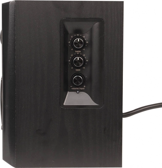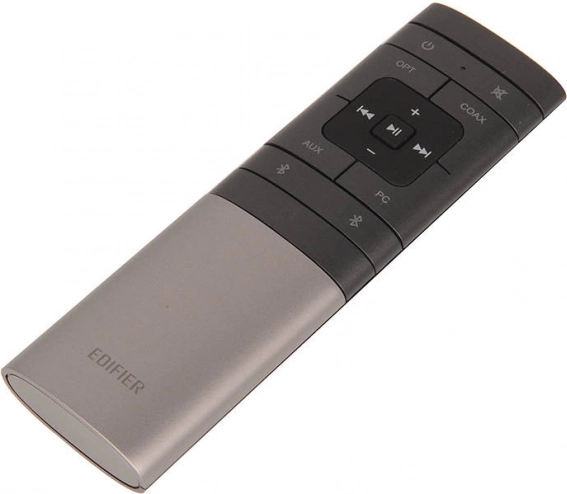 Sistem je opremljen z daljinskim upravljanjem za udobno upravljanje zvoka iz kavča in nastavljivimi gumbi za bas, visokotonce in skupno glasnost neposredno na zvočniku.