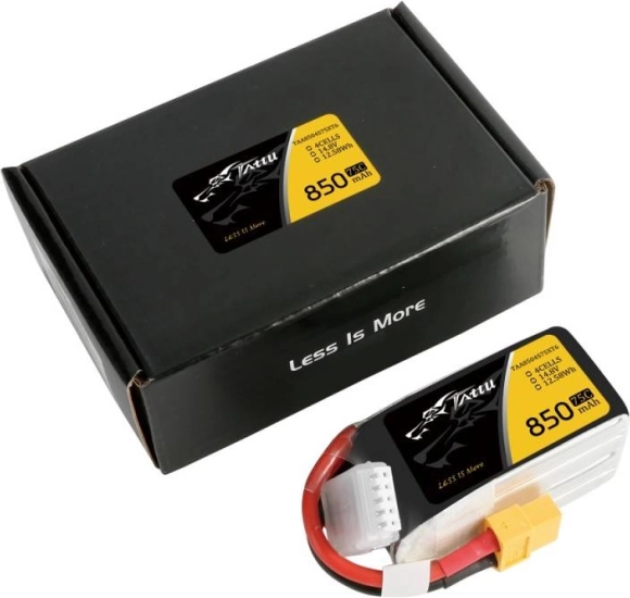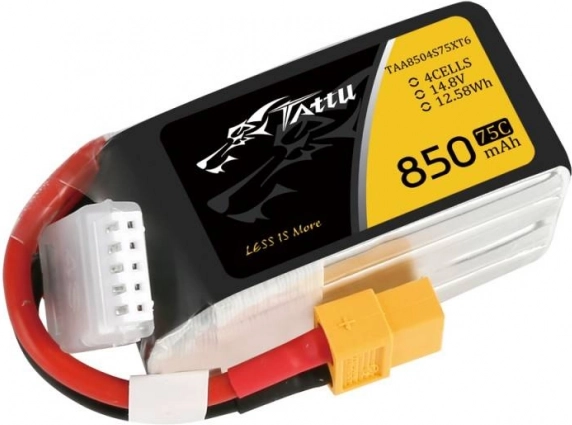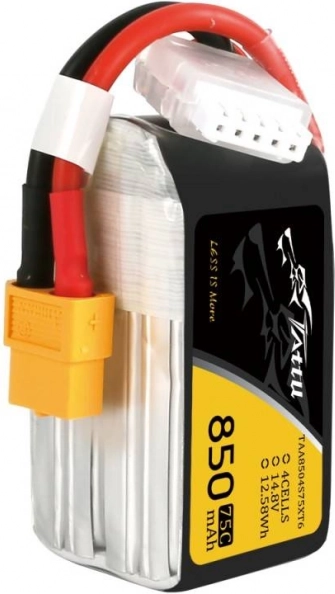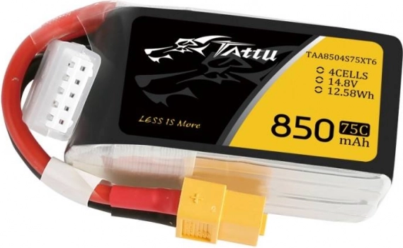 Baterija Tattu s kapaciteto 850 mAh je posebej zasnovana za uporabo v UAV, zagotavlja odlično zmogljivost zahvaljujoč premišljeno zasnovanim celicam. Idealna je za manjše drone in za težje platforme. Njena kompaktna zasnova in napredna tehnologija zagotavljata zanesljivost in dolgo življenjsko dobo.