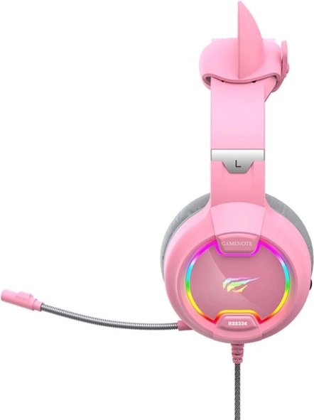 Havit Gamenote H2233D v rožnati barvi ponujajo zabaven dizajn s snemljivimi mačjimi ušeski in izrazitim RGB učinkom. Zahvaljujoč velikim 50 mm zvočniškim enotam dobite razširjeno zvočno polje, izboljšane base in podrobno podajanje efektov za poglobljeno igralno izkušnjo.