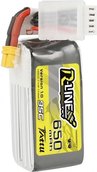 Iščete lahek, a zmogljiv vir za FPV drone? Tattu R-Line 650 mAh 14,8 V (4S) je zasnovana za največje obremenitve s stalnim praznilnim tokom 95C. Ponuja hiter dovod energije, minimalne padce napetosti in daljšo življenjsko dobo celic tudi pri dinamičnem letenju.