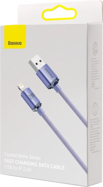 Sodoben in trpežen vijoličen USB kabel Baseus Crystal Shine, idealen za hitro in varno polnjenje ter prenos podatkov. Podpira tok 2,4 A.
