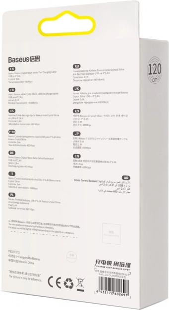 Slogovni in vzdržljiv kabel Baseus Crystal Shine ponuja hitro polnjenje 2,4 A, sočasen prenos podatkov 480 Mb/s ter trpežno tekstilno pletenje z kovinskimi konektorji za dolgo življenjsko dobo. Zahvaljujoč inteligentnemu uravnavanju temperature je polnjenje varno in zanesljivo.