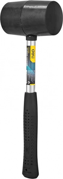 Univerzalno gumijasto kladivo Deli Tools, zasnovano za montažna dela. Ima vzdržljivo PVC glavo, odporno na udarce in deformacije, ter jekleno držalo z gumiranim oprijemom za stabilnost, natančnost in udobje pri polaganju oblog in ploščic.