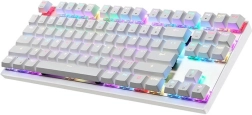 Motospeed K82 je 87‑tipkovna mehanska tipkovnica, zasnovana za natančno igranje in živahno tipkanje. Kompaktna TKL postavitev prihrani prostor na mizi, medtem ko povsem prilagodljiva RGB osvetlitev (14 učinkov + uporabniški načini) poudari sodoben gaming videz in zagotavlja popolno berljivost tudi v temi.