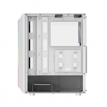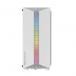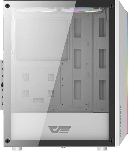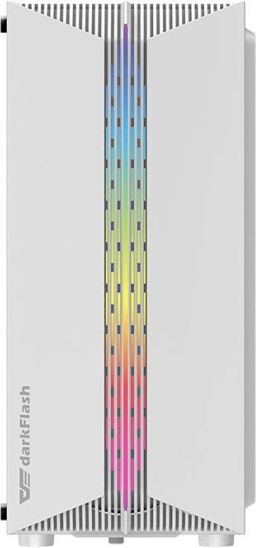 Ohišje je zasnovano za učinkovit pretok zraka – že iz tovarne vključuje 3 ventilatorje (DarkFlash C6 White) in podpira do 6 mest za ventilatorje ter namestitev vodnega hlajenja (do 360 mm spredaj). Notranji prostor brez težav sprejme GPU do 290 mm in hladilnik CPU do 160 mm. Seveda je tu praktičen I/O panel z USB 3.0, USB 2.0, zvočnimi priključki ter gumbi za vklop, ponovni zagon in LED.