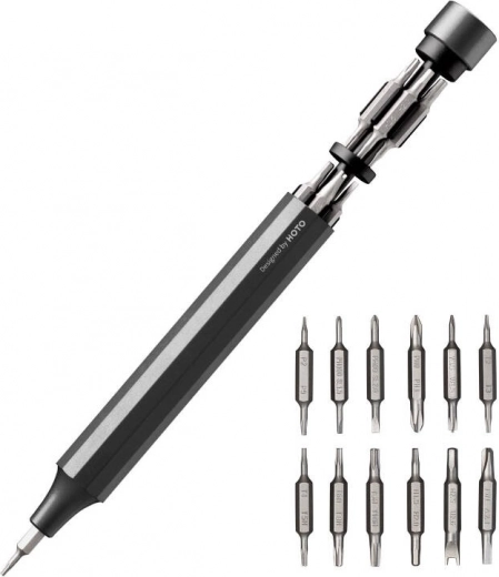 Odkrijte natančen izvijač HOTO, ki je idealen za vse vaše potrebe pri popravilih in mojstrskih opravilih. Izdelan je iz trpežne aluminijaste zlitine in ponuja večje udobje pri uporabi celo dolgoročno. Komplet vsebuje 12 obojestranskih nastavkov, kar skupno predstavlja 24 različnih vrst, shranjenih v magnetnem boksu.