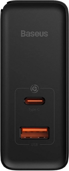 Z dvema priključkoma USB-A in USB-C Baseus GaN polnilec omogoča sočasno polnjenje dveh naprav z močjo do 65 W in 30 W.