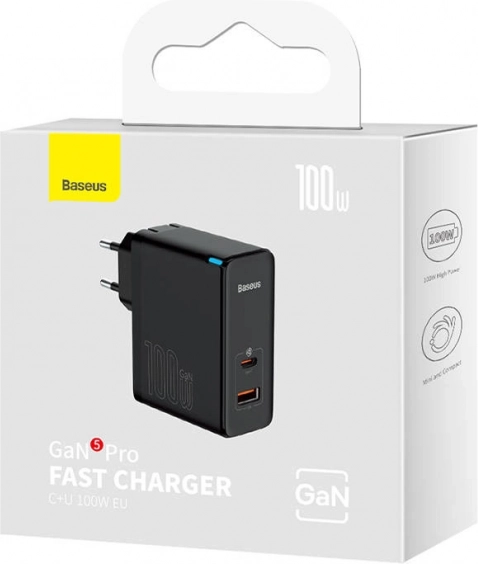 Uživajte v hitrem in učinkovitem polnjenju z Baseus GaN hitrim polnilcem. Zahvaljujoč dvema priključkoma USB-C in USB-A ter moči 100 W zagotavlja hitro polnjenje za širok nabor naprav, vključno s pametnimi telefoni, tablicami in prenosniki.