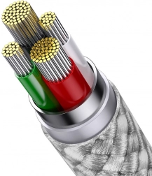 Tekstilna pletenica in večslojno oklopljenje ščitita kabel pred lomljenjem in motnjami, zato bolje prenese vsakodnevno uporabo.