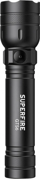 Svetilka SUPERFIRE GTS6 je odlična izbira za vsakodnevno nošenje in aktivnosti na prostem. Zahvaljujoč moči 7 W in svetlobnemu toku 360 lm zagotavlja stabilen snop z dosegom do 150 metrov. Lahka aluminijasta konstrukcija, kompaktne mere in vodoodpornost IP44 zagotavljajo zanesljivost v spremenljivem vremenu in pri zahtevnejši uporabi.
