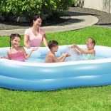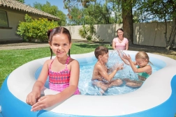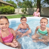 Napihljiv bazen BESTWAY je odlična izbira za vrt in dvorišče. Trpežen vinilni material zagotavlja dolgo življenjsko dobo in odpornost proti mehanskim poškodbam ter UV-žarkom. Dva ločeno napihljiva obroča tvorita močne in udobne stene, ki nudijo stabilnost pri igri otrok in sproščanju odraslih.