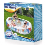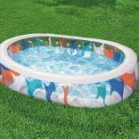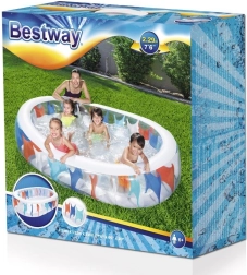 Uživajte v poletju s prostornim napihljivim bazenom 229 × 152 × 51 cm, ki se prilega večini vrtov in teras. Prosojne stene z barvnimi paneli delujejo igrivo, hkrati pa imate dober pregled nad otroki med igro v vodi.