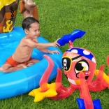Barvita napihljiva hobotnica in igralni elementi spremenijo bazenček v interaktivno vodno igrišče.