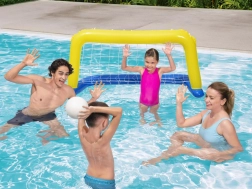 Dimenzije približno 137 × 66 cm so idealne za domače bazene. V kompletu je tudi žoga, zato lahko takoj igrate vodno polo, metanje na gol ali družinska tekmovanja. Odličen način, da spravite otroke in odrasle v pogon ter uživate v aktivni poletni zabavi v bazenu.