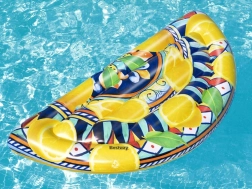 Napihljiva blazina Bestway z motivom sicilskih limon prinaša svežo poletno atmosfero v vsak bazen. Odlikujejo jo živahne barve, udobna oblika in trdna vinilna konstrukcija, ki je prijetna na dotik in odporna proti obrabi.