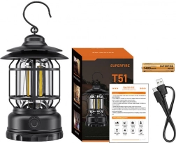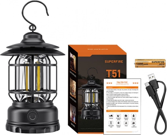 Svetilka Superfire T51 je zasnovana z mislijo na različne scenarije uporabe. Odlična je za kampiranje ali noči pod milim nebom. Zagotavlja atmosfersko osvetlitev ob druženju s prijatelji na vrtu, hkrati pa je zanimiv dodatek tudi v domu. Zahvaljujoč možnosti nastavitve svetlosti jo zlahka prilagodite svojim željam.