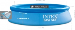 Klasika med nadzemnimi bazeni. Intex Easy Set se odlikuje z hitro in enostavno montažo zahvaljujoč napihljivemu zgornjemu robu. Dovolj je, da ga napihnete in rastoči stolpec vode bo bazen postavil sam.