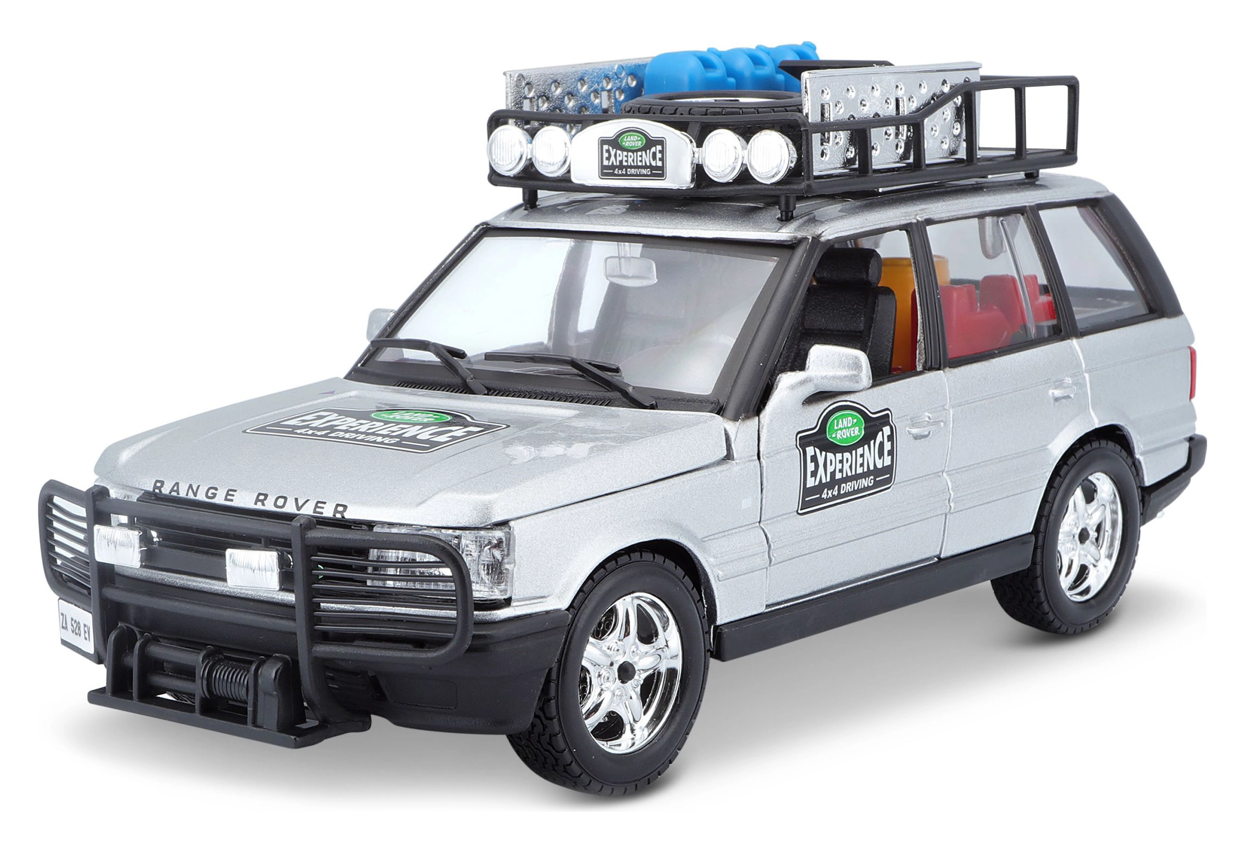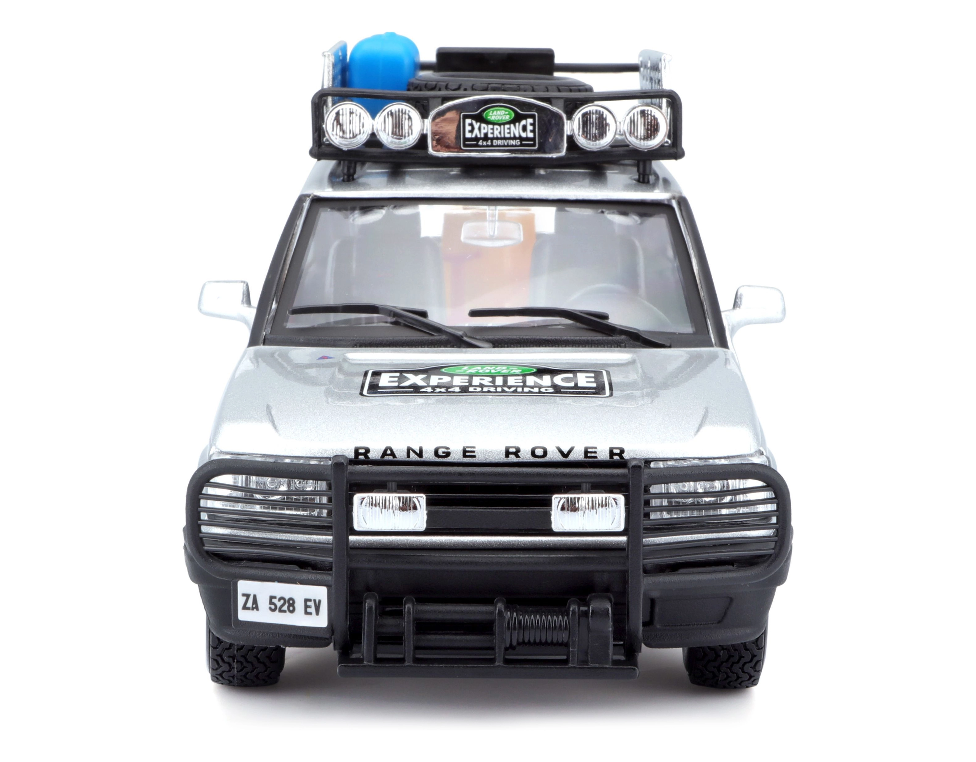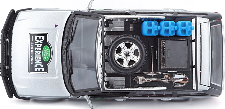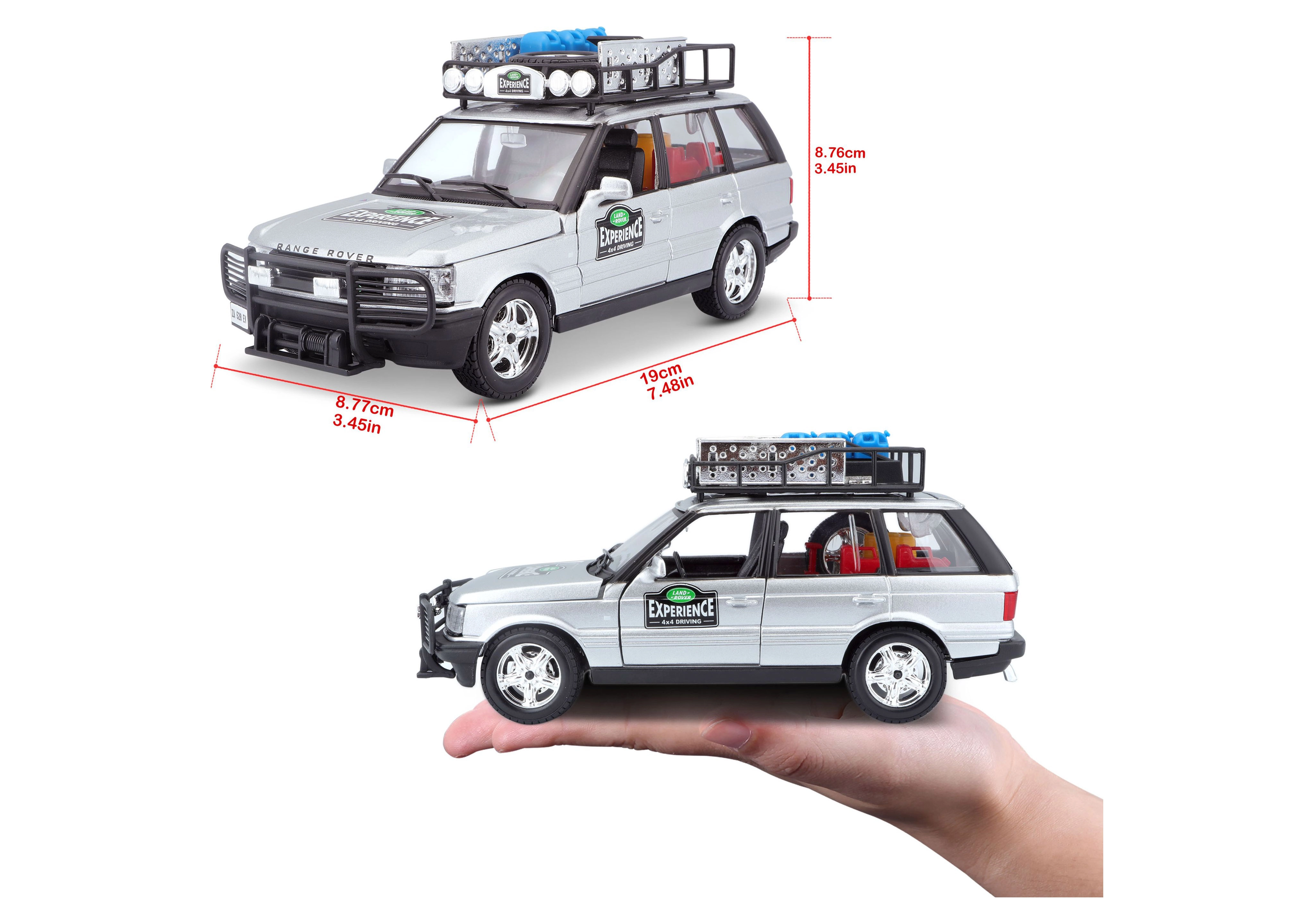 Ta natančno izdelan model vozila RANGE ROVER v merilu 1:24 prinaša avtentične podrobnosti, ki bodo navdušile vsakega ljubitelja terenskih vozil. Srebrna karoserija, dopolnjena s strešnim prtljažnikom s pripadajočo opremo, sprednjim zaščitnim okvirjem in realističnimi poslikavami, ustvarja privlačen videz za igro in razstavljanje.