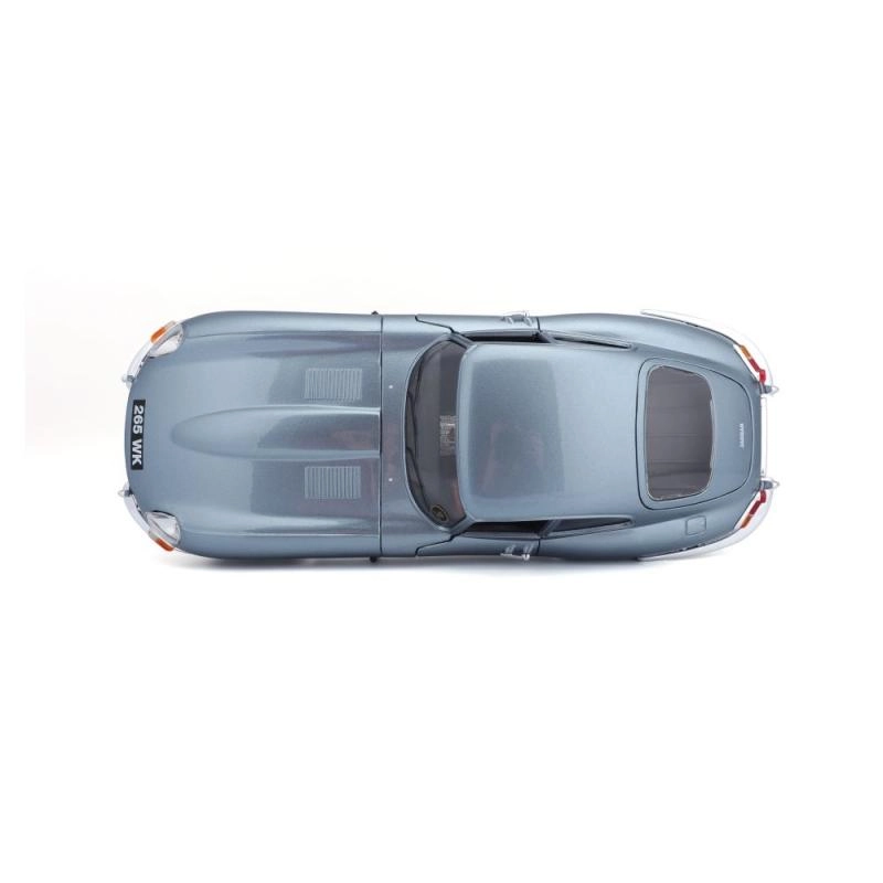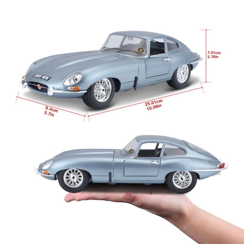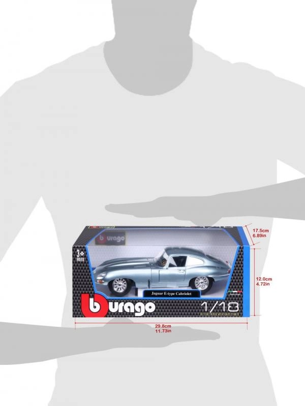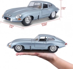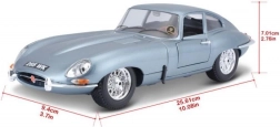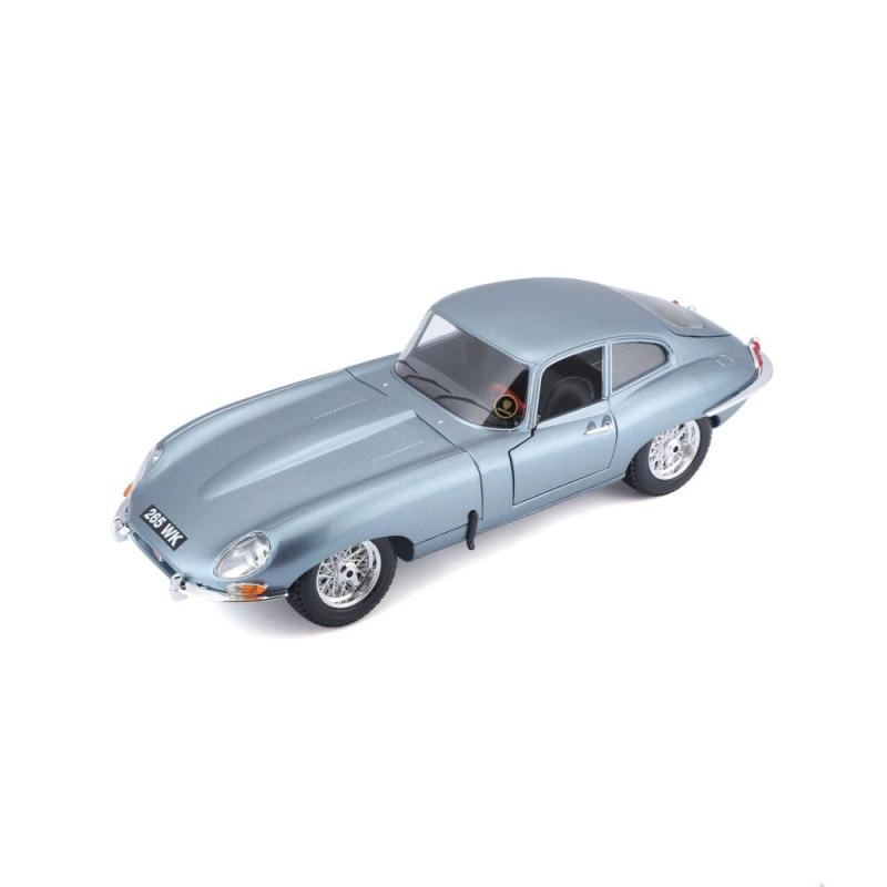 Kovinski model avtomobila 1:18 Bburago 18-12044 Jaguar E-type Coupe ni namenjen le zbirateljem. Ima odpirajoča se vrata in pokrov motorja, obračanje koles z volanom je popolnoma funkcionalno. Barva modela je srebrno-modra kovinska.