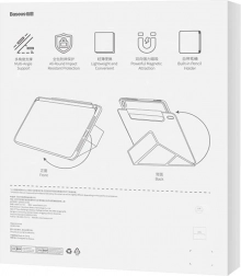 Z zložljivim sprednjim delom preprosto ustvarite stojalo za udobno pisanje, brskanje in gledanje filmov v pokončnem in ležečem položaju. Vgrajen prostor za Apple Pencil (1./2. generacija) ali Baseus Stylus poskrbi, da je pero vedno pri roki. Kakovostna konstrukcija iz TPU/PU je odporna proti madežem, prijetna na dotik in omogoča lahko nameščanje in snemanje brez poškodb naprave.