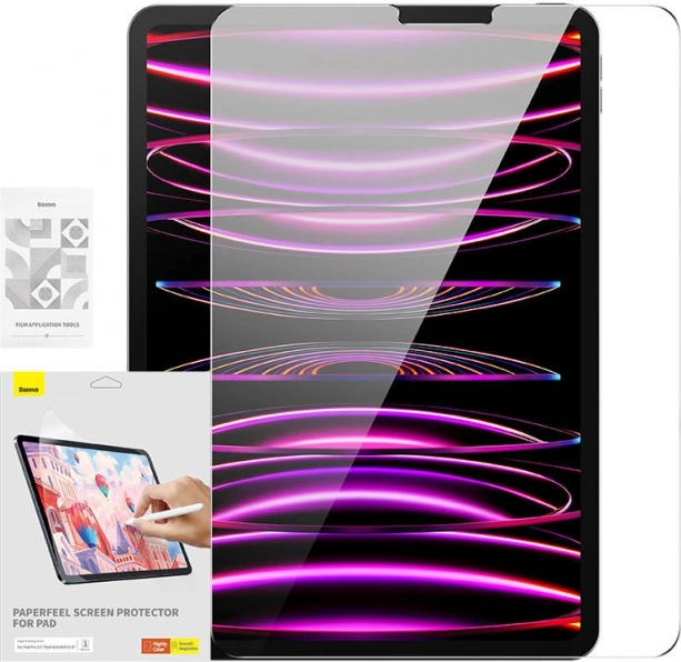 Ultratenka zaščitna folija Baseus Paperfeel za iPad Pro 11″ (2018–2022) in iPad Air 10,9″ (Air 4/5) združuje prosojno kakovost, matirano zmanjšanje bleščanja in občutek papirja pri pisanju ali risanju. Ponuja zanesljivo zaščito pred praskami, oleofobno obdelavo proti maščobi ter tekoč odziv na dotik in ob uporabi pisala.