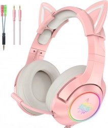 Igralne slušalke ponujajo edinstven dizajn z mačjimi ušesi, ki pritegne pozornost. Poleg videza se ponašajo z vrhunskimi zvočniki za čist zvok in zračnimi blazinicami, ki zagotavljajo celodnevno udobje. Za še boljše prilagajanje imate na voljo panel na kablu za nadzor glasnosti in mikrofona.