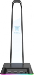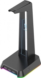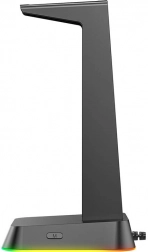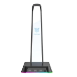 Zahvaljujoč integriranim trem USB priključkom lahko to stojalo služi ne le kot mesto za vaše slušalke, temveč tudi kot polnilna postaja, kar ga naredi večfunkcionalen element na vaši mizi. Osvetlitev z možnostjo izbire med gladkim spreminjanjem RGB barv ali enobarvnim načinom dodaja na njegovem videzu.