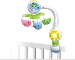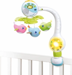 VTech pojoči vrtiljak 3-v-1 je vsestranski pomočnik za mirno uspavanje in zabavo na poti. Barviti ptički se nežno vrtijo in skupaj z glasbo ter lučko ustvarjajo pomirjujoče vzdušje. Vrtiljak ponuja češke in slovaške melodije ter uspavanke, ki dojenčku pomagajo hitreje zaspati in se počutiti varno.