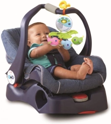 Zahvaljujoč praktičnemu sistemu pritrditve ga hitro in enostavno namestite na posteljico, voziček ali ročaj avtosedeža. Funkcija aktivacije z glasom se samodejno sproži ob joku ali nenadnem prebujanju in dojenčka ponovno pomiri. Časovnik omogoča nastavitev dolžine predvajanja in vrtenja, lučko pa lahko kadar koli izklopite.