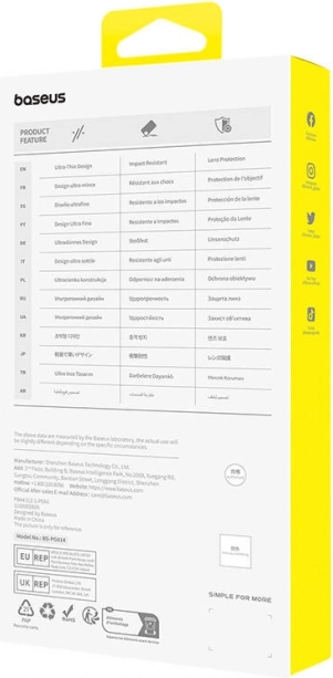 Zahvaljujoč tehnologiji Baseus AirCare so robovi ojačani za boljšo absorpcijo udarcev. Povišani robovi za 1 mm okrog zaslona in 0,6 mm okrog kamere ščitijo občutljive dele telefona. Nedrseča in proti prstnim odtisom odporna površina ohranja napravo čisto in varno v roki. Mehak TPU okvir omogoča enostavno namestitev in odstranitev.