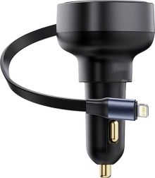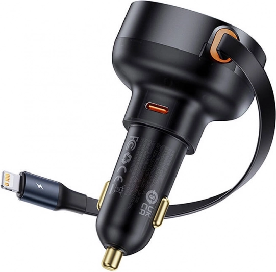 Avtomobilski polnilec Baseus Enjoyment Pro je zasnovan za enostavno uporabo in učinkovitost. Z vlečnim kablom dolžine 70 cm lahko priključite naprave z Lightning in USB‑C konektorji. Zahvaljujoč dodatnemu USB‑A priključku lahko hkrati polnite do tri naprave, kar skrajša čas polnjenja in prihrani čas.