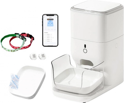 Nastavite čase in velikost porcij, spremljajte zaužite grame ter prejemajte obvestila o pomanjkanju ali blokadi hrane. OTA posodobitve prinašajo nove funkcije.