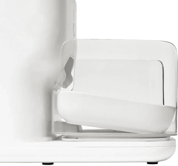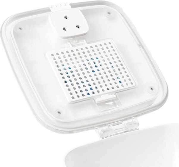 Za največjo svežino združuje silikonske tesnilne elemente, samodejno zapiranje izhoda in sušilo. Konstrukcija preprečuje mašenje briketov do 16 mm, skleda z naklonom 7° pa olajša vnos hrane. Podajalnik lahko napajate iz omrežja ali s 4× AA baterijami in omogoča odmerjanje brez povezave ob izpadu elektrike ali interneta.