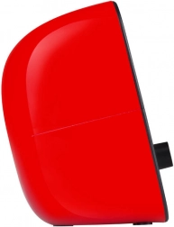 Praktično upravljanje glasnosti z vgrajenim vrtljivim gumbom in univerzalni 3,5 mm AUX vhod za telefon, tablico ali MP3 predvajalnik zagotavljata udobno uporabo vsak dan. Slogovno rdeče-črno ohišje s kompaktno velikostjo se poda na katerokoli delovno mizo.