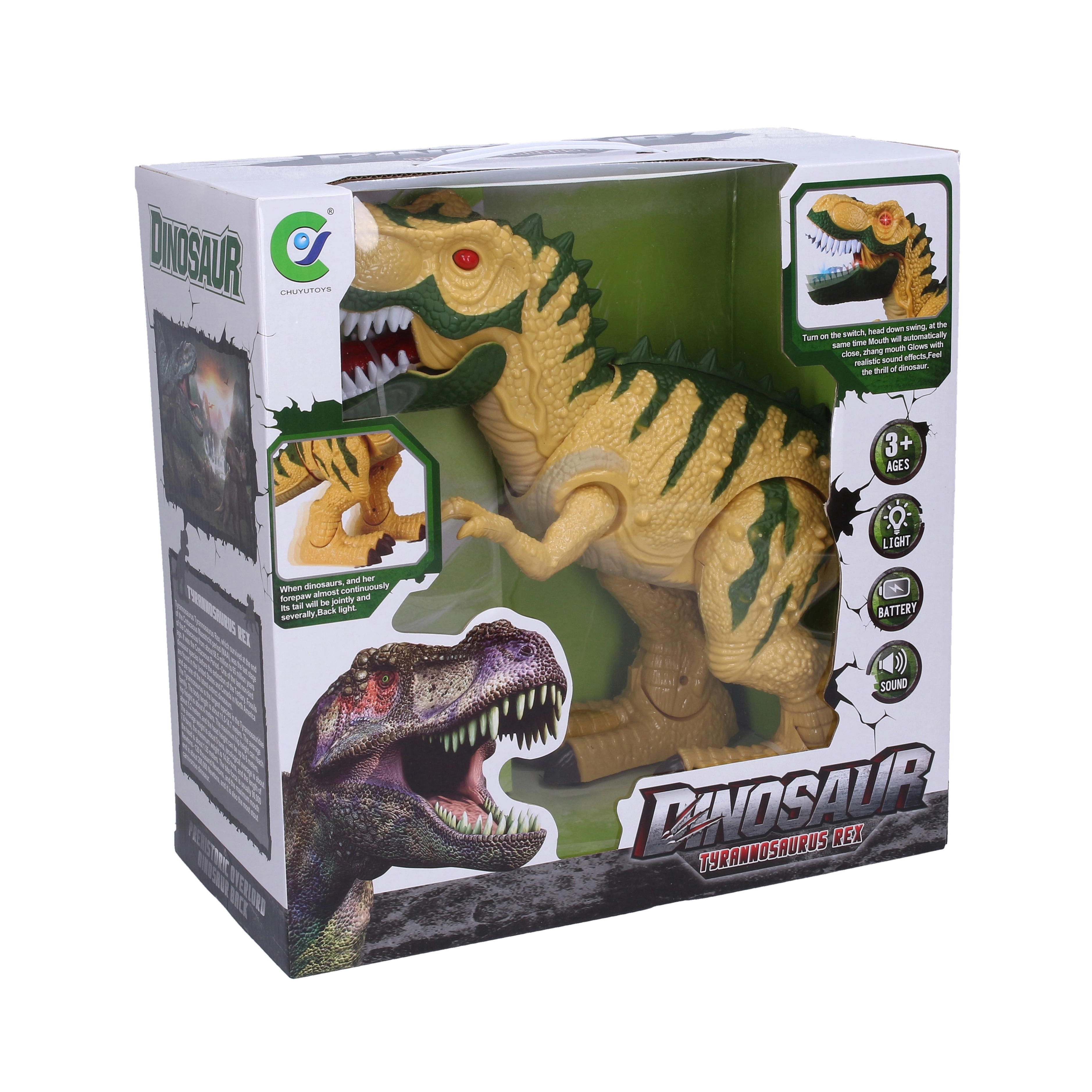 Prebudite domišljijo svojih otrok z impresivnim dinozavrom, ki se resnično premika. Zaradi kombinacije svetlečih oči, realistično zvenečega rjovenja in odpirajočih se čeljusti deluje igra še bolj pristno. Robustna izdelava zagotavlja veliko zabave in pustolovščin v otroški sobi.