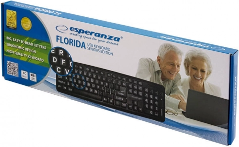 Velike tiskane črke na tipkovnici Esperanza EK129 so prava pomoč za osebe z okvarami vida. Z uporabo sodobne tehnologije UV-tiska in posebnega zaščitnega sloja so znaki jasni, lahko berljivi in izjemno odporni proti obrabi. To pomeni, da tipkovnica ohrani berljivost in estetiko tudi po dolgotrajni uporabi.