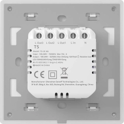 Na dotik občutljiv panel z dvema gumboma dopolnjuje 8 načinov barvne osvetlitve (npr. Party, Nočna luč, Barvno). Stikalo potrdi dejanje z nežnim zvokom in vibracijo. Uporabite ga lahko kot prehod eWeLink za dvosmerno upravljanje iste luči s pripomočki Sonoff R5 ali S‑MATE (nista priložena). Vgrajen časovnik in možnost aktivacije scen razširjata avtomatizacijo doma, s tipko Sonoff SNZB‑01 pa lahko deluje tudi kot zvonec.