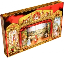 Obogatite otroško igro s pravljičnimi zgodbami, kot so Sneguljčica in Rdeča kapica, z našim Gledališčem Stilet. Ta čudovit papirni komplet vsebuje 11 lutk z vodilnimi paličicami, pri čemer je vsaka figurica dvostranska. Detajli lutk so skrbno ilustrirani in dvostranska izvedba doda še več realizma otroškim predstavam. Igrača je namenjena otrokom od 3 let in jim pomaga razvijati njihovo kreativnost in komunikacijske veščine.
