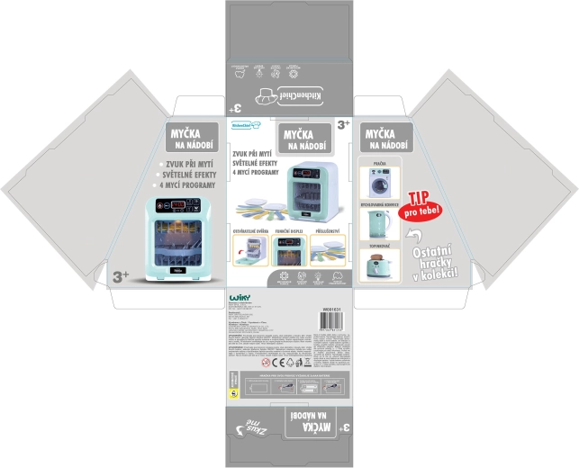 Izberi med 4 programi pomivanja ali nastavi svoj čas glede na potrebe. Pomivalni stroj je pripravljen za uporabo takoj po razpakiranju – 2× AAA bateriji sta priloženi. Popolno darilo, ki zabava in uči reda v kuhinji.