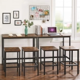 Stabilen jekleni okvir s prečkami zagotavlja odlično trdnost in mir pri vsakodnevni uporabi. Zahvaljujoč nastavljivim nogicam mizo zlahka poravnate tudi na neravnih tleh, medtem ko praktična opora za noge povečuje udobje pri sedenju. Rustikalna rjava plošča je enostavna za vzdrževanje ter deluje toplo in naravno.